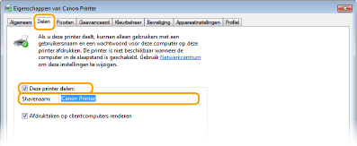 Om de onderstaande procedure uit te voeren, moet u zich bij de computer aanmelden met een beheerdersaccount. Afhankelijk van het besturingssysteem en de bitarchitectuur (32-bits of 64-bits) van de printserver en de clientcomputers, is het misschien niet mogelijk stuurprogramma's via het netwerk te installeren. Overleg met uw netwerkbeheerder als u een printserver wilt implementeren in een domeinomgeving. |