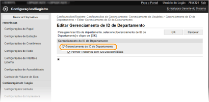 Selecione a caixa de verificação [Gerenciamento de ID de Departamento].