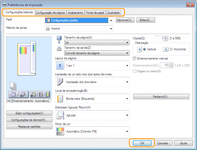 Especifique as definições de impressão conforme necessário e clique em [OK].