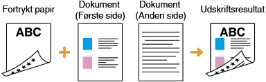 Indstillingen <Skift papirindføringsmetode>Når du udskriver på fortrykt papir, skal du ændre retningen af papiret, der skal ilægges, hver gang du udfører 1-sidet eller 2-sidet udskrivning. Men hvis <Skift papirindføringsmetode> er indstillet til <Prioritering for printside>, kan retningen, som du bruger til at ilægge fortrykt papir i til 2-sidet udskrivning (med logosiden nedad), også bruges til 1-sidet udskrivning. Denne indstilling er især nyttig, hvis du ofte udfører 1-sidet og 2-sidet udskrivning. <Skift papirindføringsmetode> |