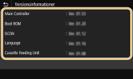Kontroller firmwareversionenDu kan kontrollere firmwareversionen fra maskinens kontrolpanel. Når du er færdig med at udføre firmwareopdateringen, skal du sørge for, at opdateringen blev udført korrekt. Kontroller firmwareversionen |