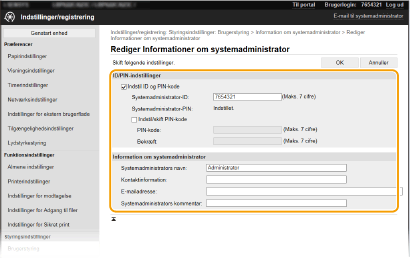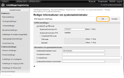 Nogle indstillinger kan kun ændres, når du er logget på i Systemadministratortilstand. Nogle indstillinger kan kræve handlinger, der er anderledes end den her beskrevne fremgangsmåde. |