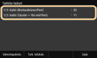 <Valvontapalvelu> mahdollistaa tiedonsiirron etäseurantapalvelimen kanssa. Kun tämä kohde suoritetaan, tietoja laitteesta lähetetään säännöllisesti laitteeseen yhdistettyyn etäseurantapalvelimeen. Toiminnon <Tark. laitekok.> avulla voit tarkistaa laitteeseen asennetut valinnaiset yksiköt. |