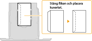 Fyll på kuverten så att sidan med fliken vänds mot vänster sida enligt bilden. |