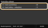 <Bevakningsservice> aktiverar kommunikation med en fjärrövervakningsserver. När du väljer det här alternativet kommer information om enheten att regelbundet skickas till den fjärrövervakningsserver som är ansluten till enheten. Med <Kontr. enh. Konf.> kan du kontrollera tillvalsenheterna som har installerats i enheten. |