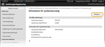 Vissa inställningar kan endast ändras när du är inloggad i systemhanteringsläge. För vissa inställningar kan andra rutiner gälla än de som beskrivs här. |
