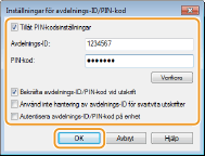 [Bekräfta avdelnings-ID/PIN-kod vid utskrift]