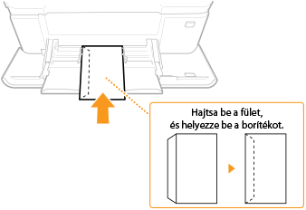 A Monarch, COM10, DL és ISO-C5 borítékokat álló tájolással helyezze be (a hosszú szélek érintkezzenek a két széllel) úgy, hogy a nem ragasztós oldal (elülső oldal) felfelé nézzen. A borítékok hátoldalára nem lehet nyomtatni.