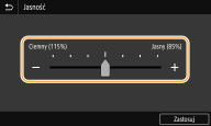 Dotknij <+>/<->, aby dostosować ustawienie na skali. Można również dostosować ustawienie, przesuwając palcem suwak w lewo lub prawo.