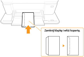 Załaduj koperty Monarch, COM10, DL lub ISO-C5 w orientacji pionowej (krótsze krawędzie powinny znajdować frontem) niezaklejoną stroną (przednią) do góry. Nie można drukować na tylnej stronie kopert.