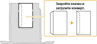 Загружайте конверты таким образом, чтобы отворот был направлен в левую сторону, как показано на иллюстрации. |