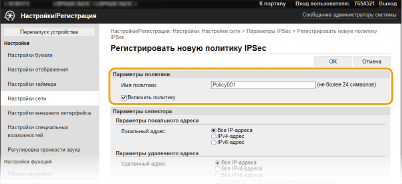 В поле [Имя политики] введите алфавитно-цифровые символы имени для идентификации политики.