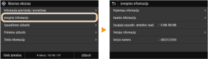 Galite keisti įvairius su ekranu susijusius parametrus, pavyzdžiui, ekrano kalbą: <Rodymo parametrai>