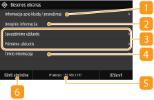 Galima nurodyti, ar turi būti rodomas IP adresas ekrane <Būsenos ekranas> nustatant <Rodyti IP adresą>.