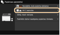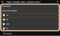 Jeigu užregistruojate dažnai naudojamo popieriaus formatą naudodami mygtukus <S1>–<S3>, galite iškviesti juos vienu lietimu. Pasirinktinio popieriaus formato registravimas