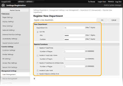 [Department ID] Įveskite skyriaus ID numerį, kuris bus registruojamas.