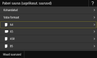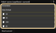 Kui sisestatud paberi formaati ei kuvata, valige vahekaart <Muud suurused>.