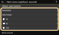 Kui sisestatud paberi formaati ei kuvata, valige vahekaart <Muud suurused>.