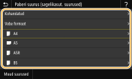 Kui sisestatud paberi formaati ei kuvata, valige vahekaart <Muud suurused>.