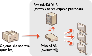 Uporaba operacijske ploščePreverjanje pristnosti IEEE 802.1X lahko omogočite ali onemogočite tudi z možnostjo <Meni> na zaslonu Domov. <Uporabi IEEE 802.1X>