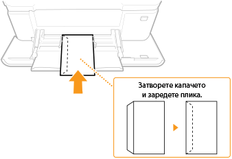 Зареждайте пликовете така, че краят с капака да е насочен към лявата страна, както е показано на илюстрацията. |