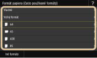 Ak uložíte často používanú veľkosť papiera na tlačidlá <S1> až <S3>, môžete ju vyvolať jedným dotykom. Uloženie vlastnej veľkosti papiera