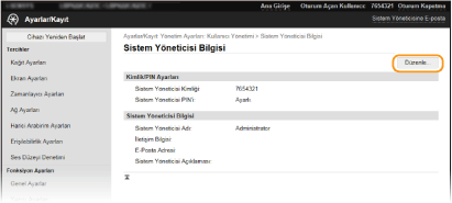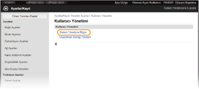 Bazı ayarları yalnızca, Sistem Yöneticisi Modunda oturum açtığınızda değiştirebilirsiniz.