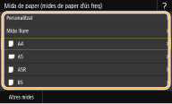 Si deseu la mida de paper que utilitzeu freqüentment als botons <S1> a <S3>, podeu recuperar-los mitjançant tecles abreujades. Desament d'una mida de paper personalitzada