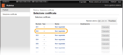 Fare clic sul collegamento di testo in [Numero], [Tipo] o [Nome] per una voce indicata con "Non registrato".
