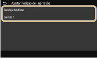 Se um documento for impresso descentrado ou fora da área de impressão, ajuste a posição de impressão. Pode ajustar a posição de impressão para cada origem de papel. Pode ajustar a posição de impressão no intervalo de -5,0 mm a +5,0 mm em incrementos de 0,1 mm.