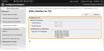 Especifique [Versão Máxima] e [Versão Mínima] do TLS.