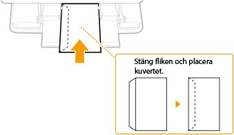 Fyll på kuverten så att sidan med fliken vänds mot vänster sida enligt bilden. |