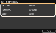 Můžete také zadat možnost <VYS. s ECM> a <Rychlost VYS.> v části <Nabídka>