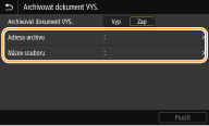 Když nepoužíváte funkci pro archivaci odeslaných dokumentů, vyberte <Vyp>.