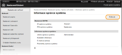 Některá nastavení můžete změnit pouze v případě, že jste přihlášeni v režimu správce systému.