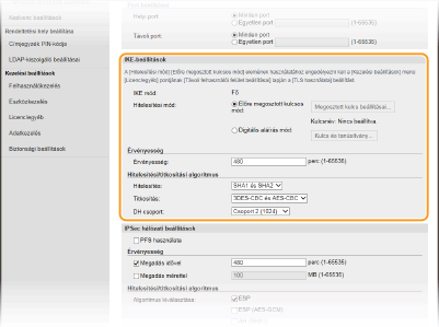 Adja meg az [Érvényesség] és a [Hitelesítés]/[Titkosítás]/[DH csoport] beállításokat.