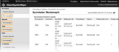 Miután bejelentkezett rendszerkezelői módban, a [Munkaszám] elemre kattintva részletes információkat, illetve előnézetet jeleníthet meg azokról a dokumentumokról, amelyeknek a továbbítása sikertelen volt.