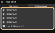 Ha a <Munkanapló megjelenítése> beállítás értéke <Ki>, akkor az elküldött dokumentumok naplói nem tekinthetők meg. <Munkanapló megjelenítése>