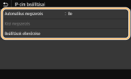 Válassza a <TCP/IP-beállítások>  <IPv4-beállítások>  <IP-cím beállításai> lehetőséget.