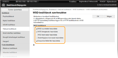 WSD-n keresztüli nyomtatáshoz jelölje be ezt a jelölőnégyzetet. Ha nem használ WSD-nyomtatást, akkor törölje a jelet a jelölőnégyzetből.