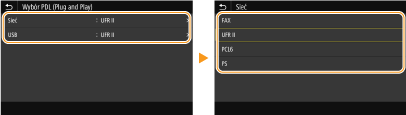 Konfiguracja wielu ustawień wydruku, takich jak liczba kopii albo drukowanie jednostronne/dwustronne, jest możliwa za pośrednictwem aplikacji albo sterownika drukarki. Jednak opcję <Zastąpienie rozmiaru papieru> można skonfigurować jedynie w urządzeniu.