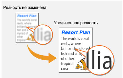 ![]() | Можно настроить резкость изображения. Можно увеличить резкость расплывчатого текста и строк или снизить ее для улучшения качества для фотографий, напечатанных в журнале. |