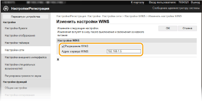 Параметры WINS также можно настроить в <Меню> на экране Главный. <Настройки WINS>
