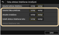 <Faksa atmiņas bloķēšanas iestatījumi>