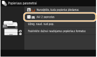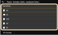 Jeigu užregistruojate dažnai naudojamo popieriaus formatą naudodami mygtukus <S1>–<S3>, galite iškviesti juos vienu lietimu. Pasirinktinio popieriaus formato registravimas