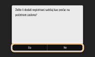Ako odaberete <Da>, prikazuje se poruka. Provjerite poruku pa odaberite <OK>. Registrirana kombinacija postavki dodaje se na Početni zaslon kao gumb prečaca.