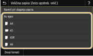 Ako registrirate veličine papira koju često koristite na gumbima od <S1> do <S3>, možete ih odabirati dodirom. Registriranje prilagođene veličine papira