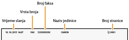 Registrirajte broj faksa i naziv uređaja. Podaci se ispisuju pri vrhu svake stranice koja se šalje iz uređaja.