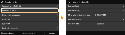 Puteţi modifica mai multe setări cu privire la afişaj, cum ar fi limba de afişare: <Setări afişaj>