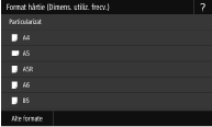 Dacă înregistraţi formatul de hârtie pe care îl utilizaţi frecvent pe butoanele <S1> – <S3>, puteţi să le apelaţi cu o singură atingere. Înregistrarea unui format de hârtie personalizat